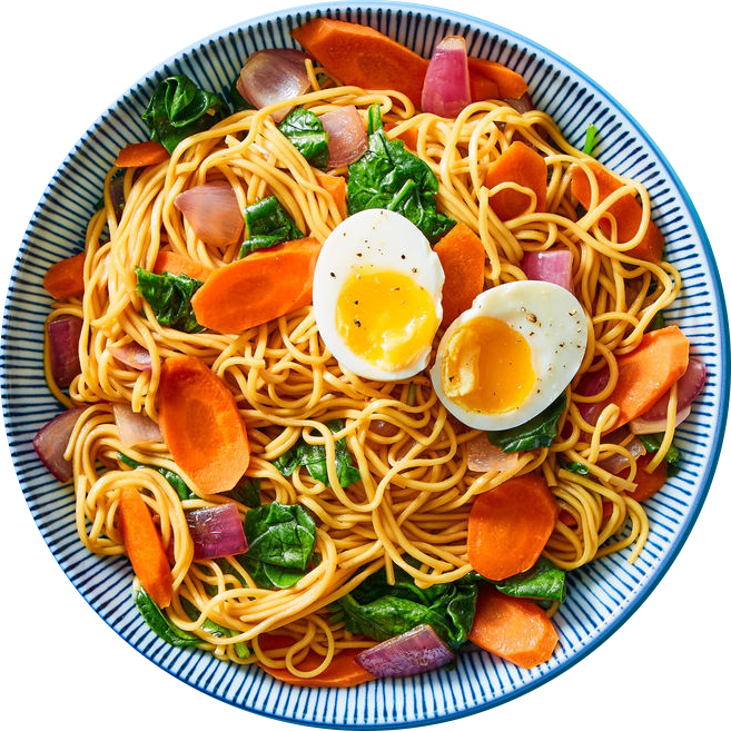 Stir-fried noodles tossed with egg, veggies, & Indo-Chinese flavours.